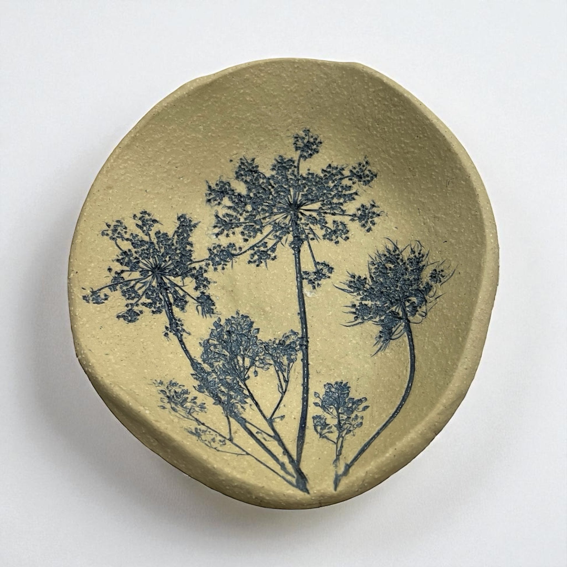 Oval Ceramic Decorative Dish/Wall Hanging W/ Pressed Queen Ann's Lace